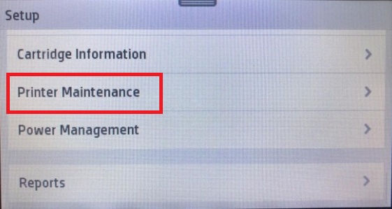 1.1 Click "Setup" on printer operation panel and find "Printer Maintenance";
