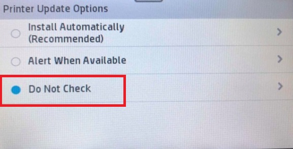 1.4 Choose "Do Not Check" in "Printer Update Options" interface;