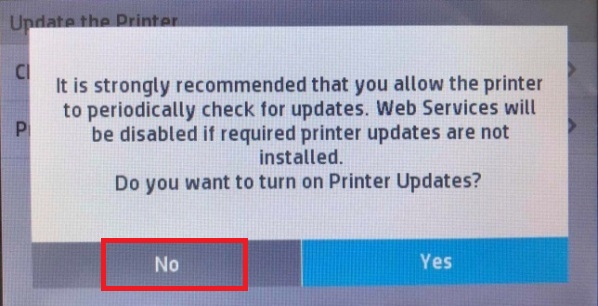 Notice: Updating firmware may cause replacement chips to fail to work properly, please click "No" when above notice (as picture 2) shows to turn off "Printer Update".