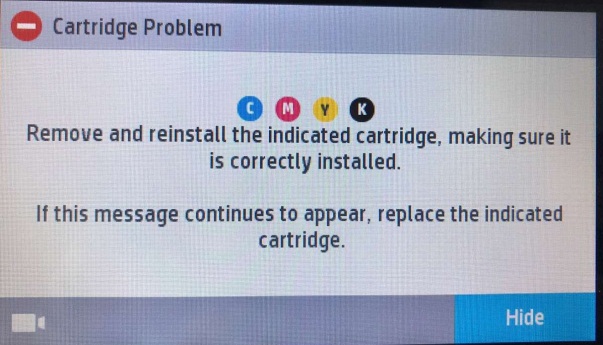 As we clicked "Yes"(as shown in Picture 3),  "Cartridge Problem" notice displayed(as shown in Picture 4). The replacement chips installed in the printer can't be used any more.